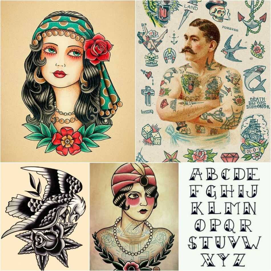 Тату Олд Скул (эскизы, в зависимости от предпочтений человека, могут быть мягкими и женственными или, наоборот, агрессивными и брутальными), как отдельное направление, стали известны в Европе в конце 20-х гг. Родоначальником рассматриваемого стиля считается «Sailor Jerry» Коллинз. Он был частью морского флота армии США. Род деятельности этого человека подвигнул его на занятия творчеством, где в качестве рабочей поверхности использовался кожный покров товарищей.