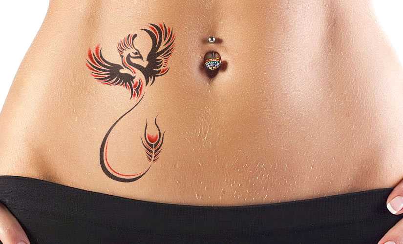 Феникс очень часто встречается в различной мифологии народов мира. Основным достоинством этой красивой птицы было возрождение из пепла. Когда птица-феникс чувствовала приближение смерти, она вила гнездо, после чего поджигала сама себя. Через три дня феникс оживала, но опыт, который птица накопила в прошлых жизнях, оставался с ней. До сих пор никто не может точно сказать существовала ли такая птица в реальной жизни, или же это только красивая легенда. Но на теле изображение феникса смотрится довольно реалистично.