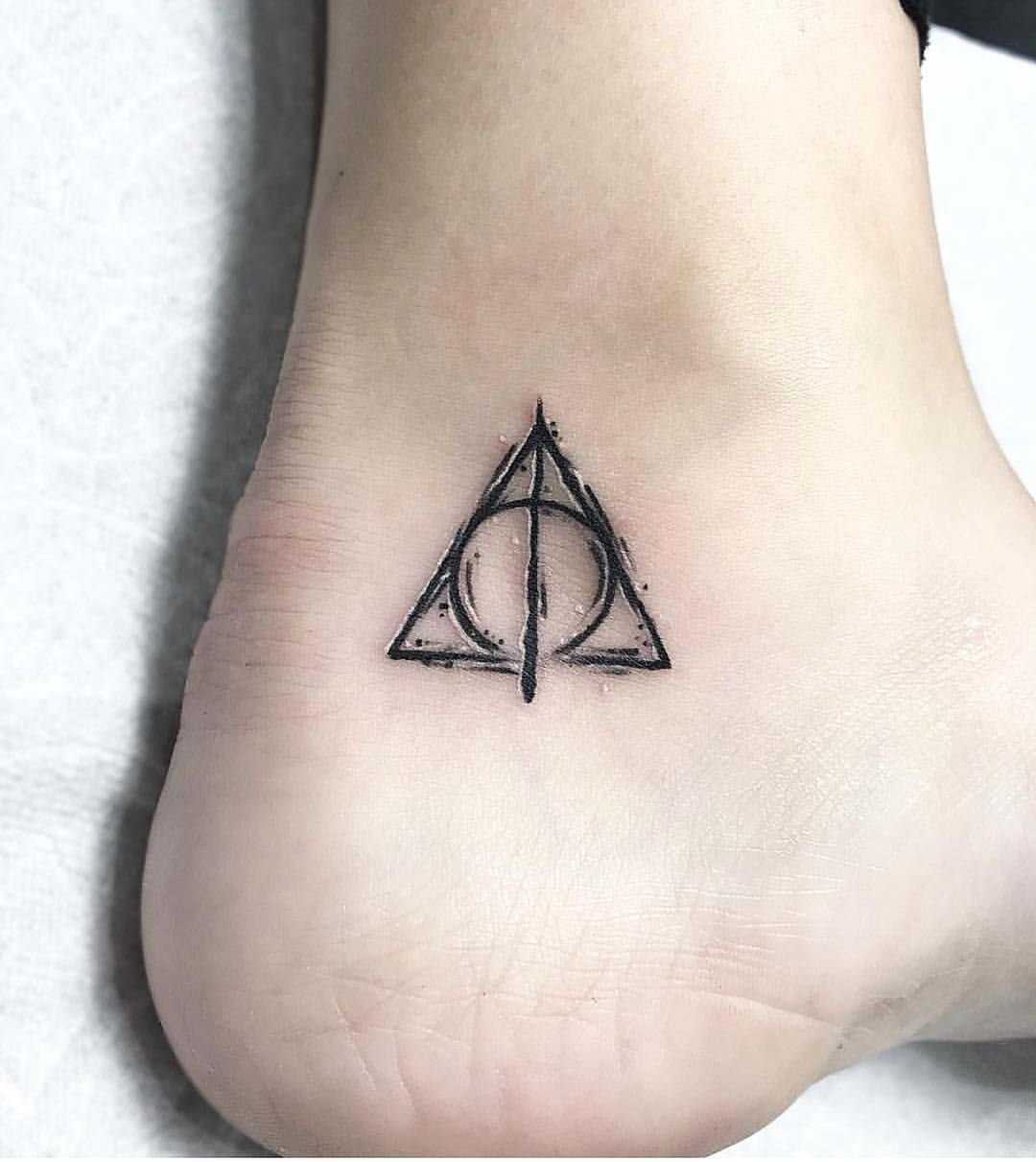 Символ даров смерти олицетворяет собой собранные вместе все магические предметы, сам треугольник является обозначением мантии невидимки, круг в треугольнике – камень воскрешений, а вертикальная линия, разделяющая их, означает могущественную бузиновую палочку. Этот знак, содержащий в себе все три магических элемента, символизирует могущество и невероятную власть. Возможность побеждать и при этом оставаться невредимым и возрождаться из пепла подобно фениксу. Однако такой символ также означает мудрость, ведь этой великой силой управлять не так уж легко, так как она может вознести и убить. Посмотрите эскизы для татуировки с дарами смерти
