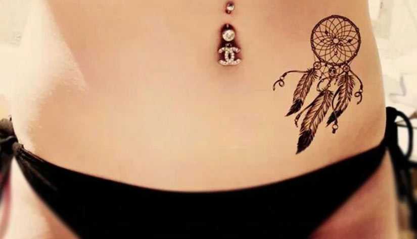 На ребрах или животе Ловец снов набивается не так уж часто. Но в этом случае он является олицетворением привлекательности и чувственности.