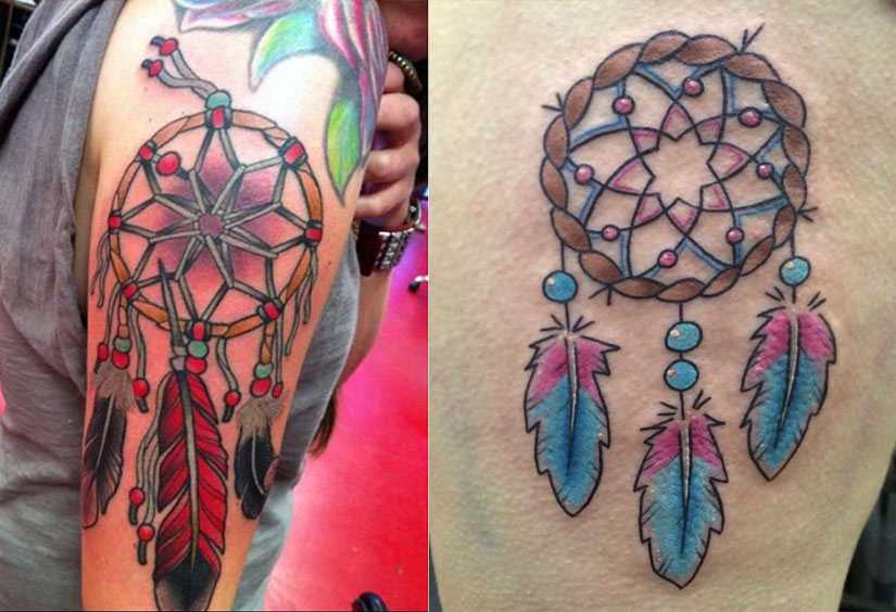 В современном мире необязательно соблюдать все правила исполнения техник ловца снов. Смысл теряется среди модных тенденций, одухотворенность исчезает и амулет становится обычным изображением. Именно поэтому он часто выполняется не по правилам индейских народов, а видоизменяется. Добавляются современные элементы, которые не несут никакой смысловой нагрузки. В таком случае дизайн тату может быть настолько разнообразным, насколько позволяет фантазия девушки.