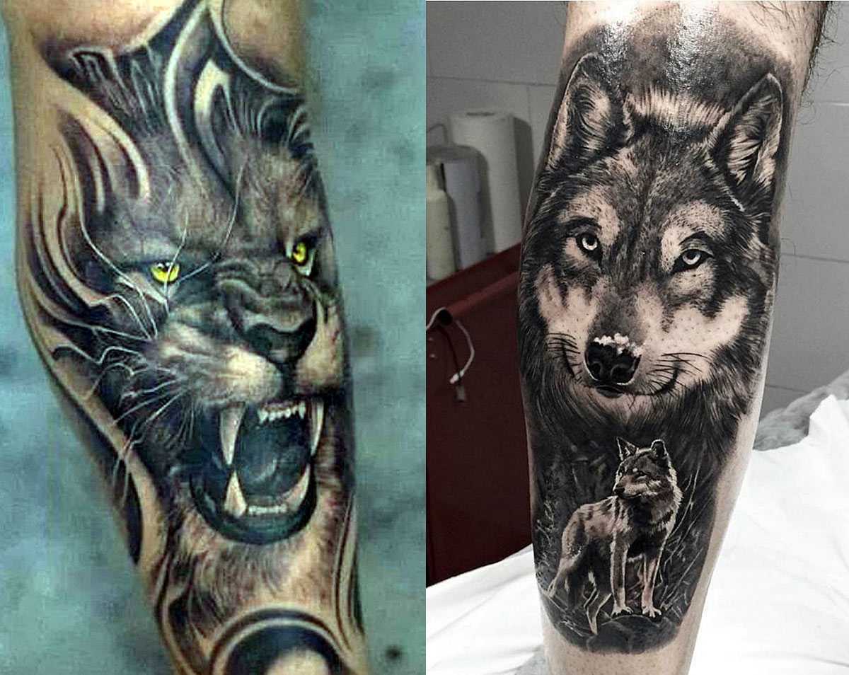 Чисто мужские татуировки с мордой льва и волком