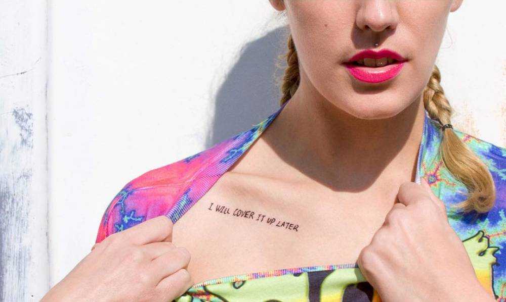 Грамотно подобранная татуировка для девушки способна придать ей загадочность, нежность и хрупкость. Наиболее популярными для украшения ключиц считаются надписи. Чаще всего их выполняют на иностранном языке, вкладывая в суть глубокую философию. Кроме осмысленности надписи необходимо учитывать ее шрифт и форму. Прежде чем принять решение о татуировке на ключице, необходимо понимать, что это место особенно чувствительно. Самые неприятные ощущения ожидают худых девушек, у которых практически нет жировой прослойки под кожей.