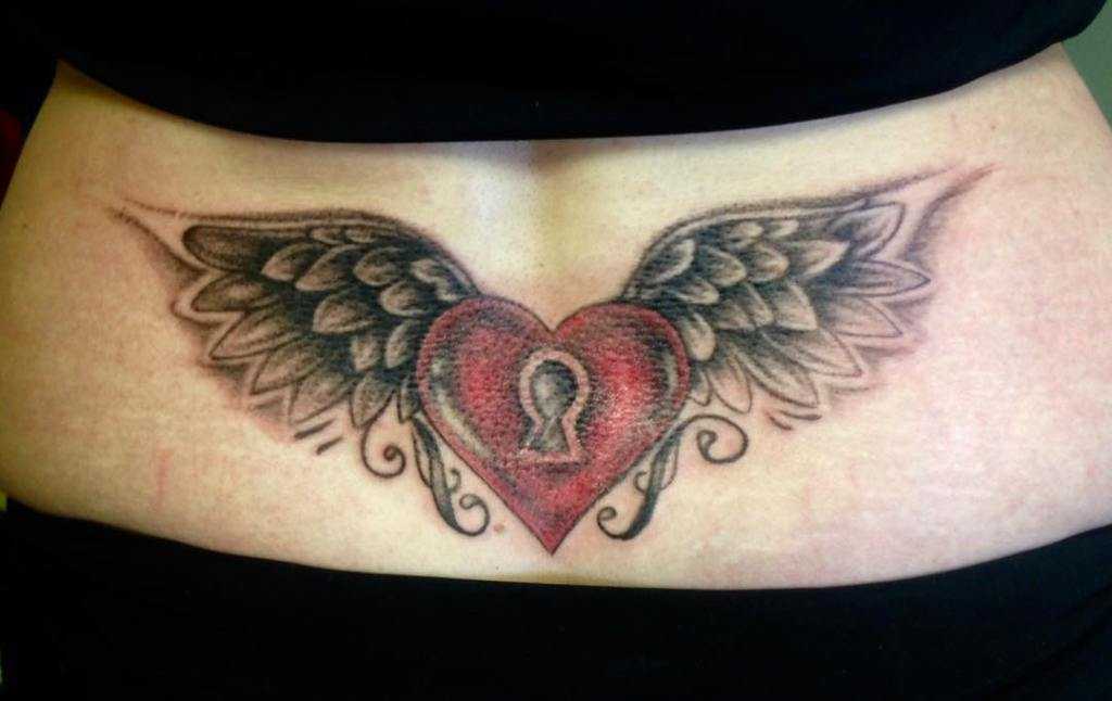 Татуировка с сердцем и крыльями является одной из самых модных эскизов среди молодежи. Основное значение этой татуировки – любовь, вознесение, свобода и духовную природа.