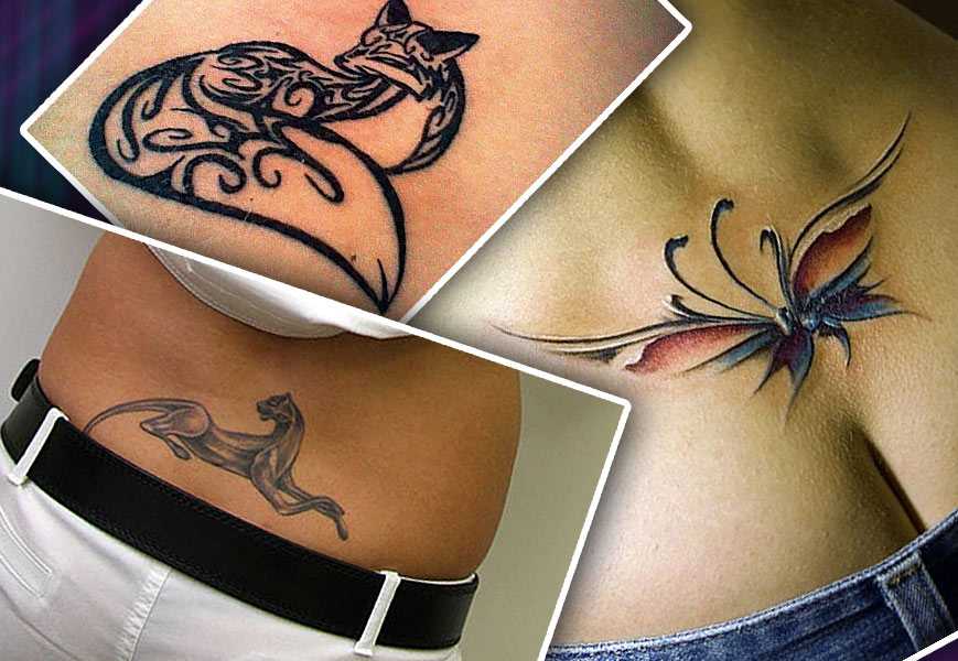 Наряду с надписями есть татуировки на пояснице девушки в виде животного. Выбирая их, обладательнице рисунка необходимо узнать значение тату, и лишь потом наносить его. Наиболее распространенные татуировки животных и птиц обозначают следующее: