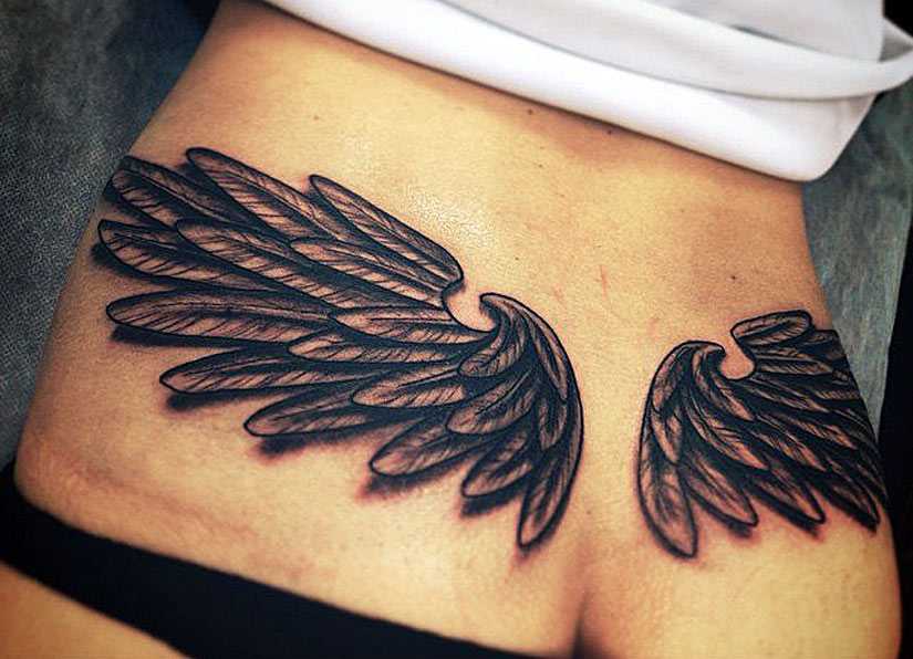Некоторые решаются изобразить крылья, ассоциирующиеся с ангелом. Легкость, мечтательность, сохранение собственной уникальности – то, что имеет значение для их обладательницы.
