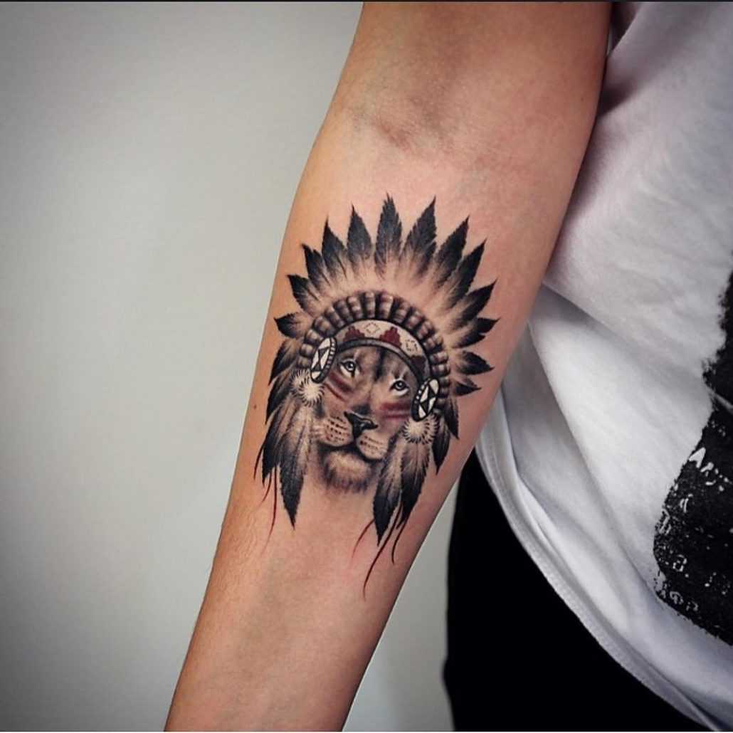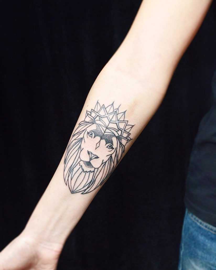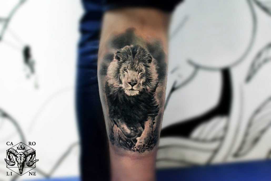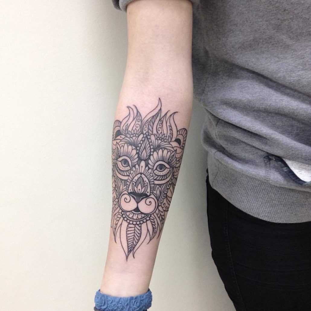 Размер предплечья позволяет нанести сюда изображение любого животного. Среди распространенных вариантов можно выделить льва, который является олицетворением смелости, власти, гордости и справедливости. А вот изображение львицы носит несколько иное значение. Считается, что такая татуировка будет символизировать женское счастье и радость материнства.