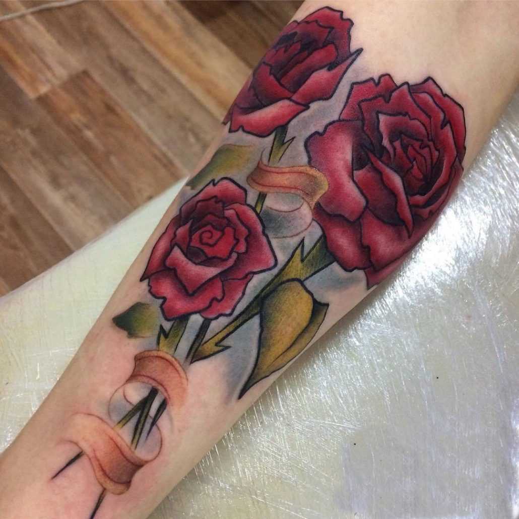 При нанесении тату в виде розы, важно обращать внимание на ее цвет. Так красная роза является символом страсти и любви. Белый цветок олицетворяет чистоту и невинность девушки