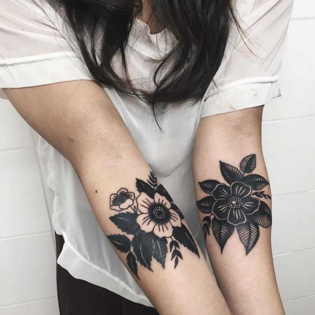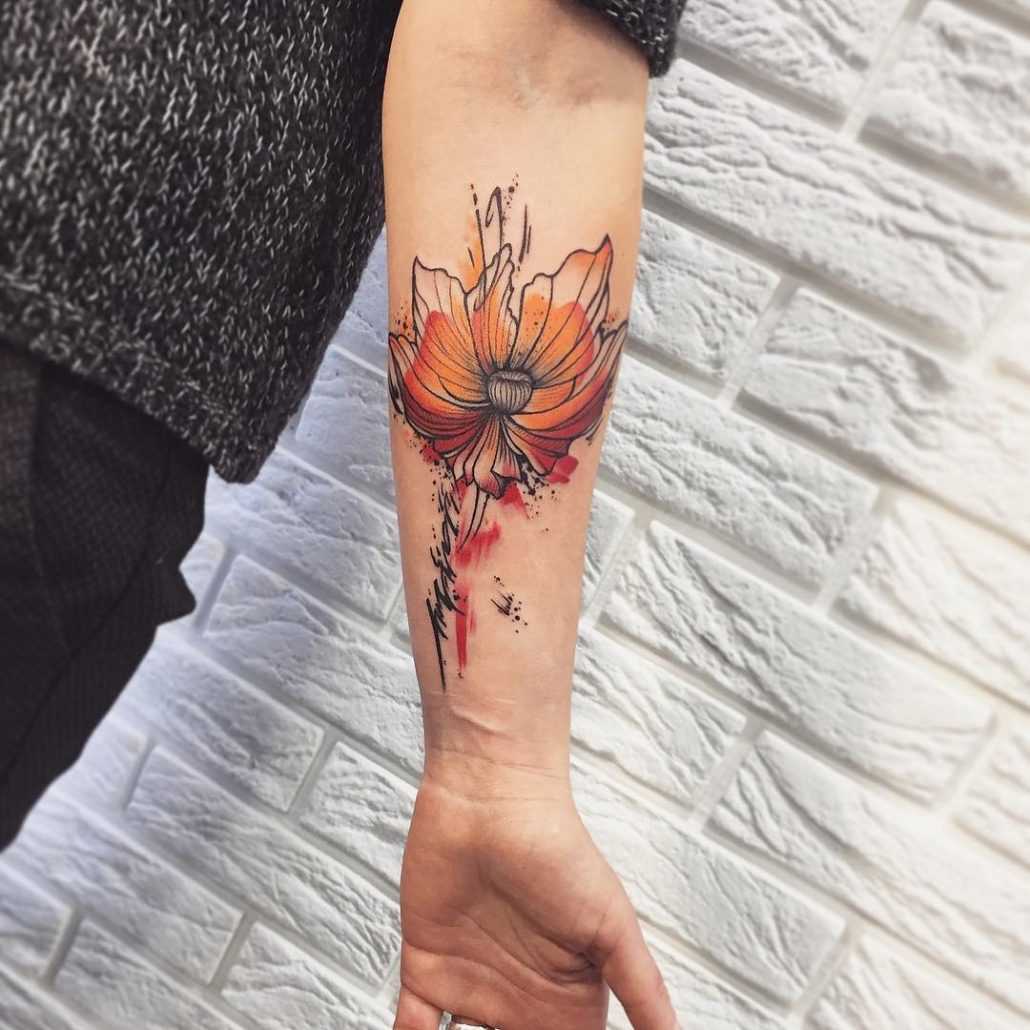 Тату цветов на предплечье