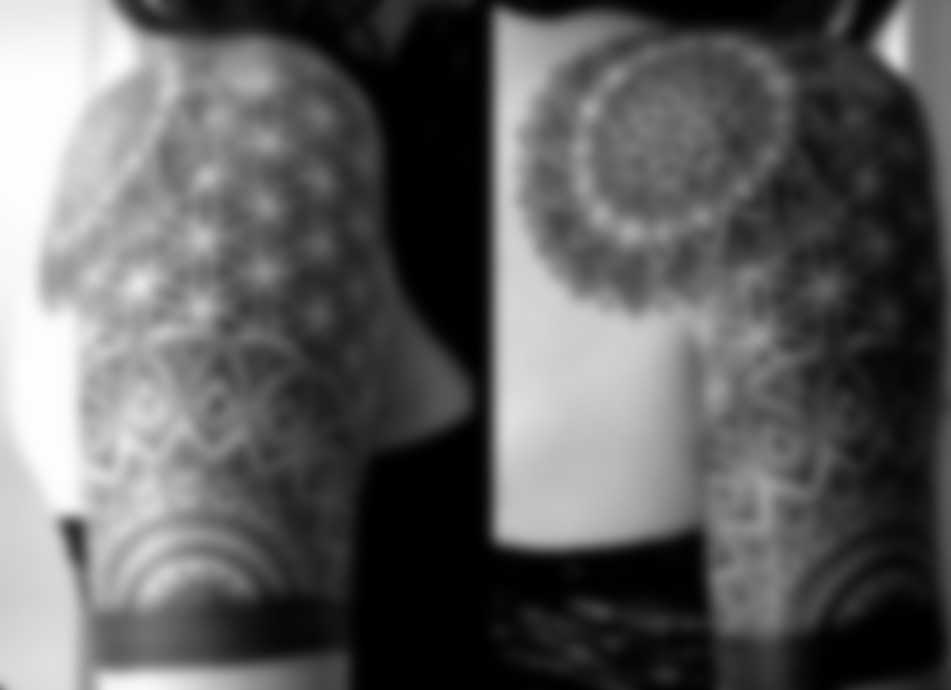 Здесь мастера используют только черные чернила для создания линий, теней и эффектов. Эта техника появилась около пяти лет назад и развивалась для достижения очень чистых и уравновешенных эскизов. Татуировщики могут создавать рисунки только с помощью линий, а могут добавлять штриховки точками.