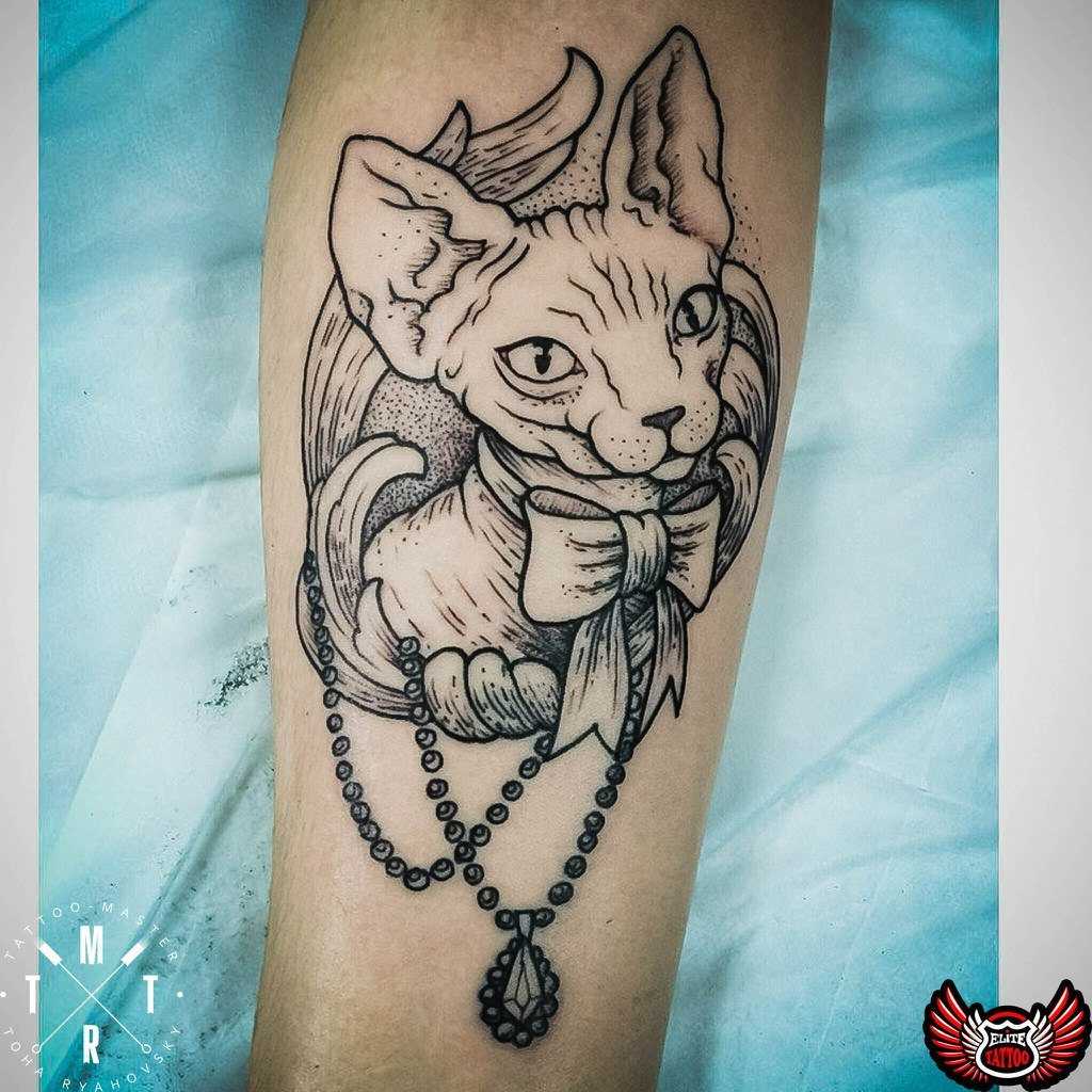 Нередко на предплечье можно увидеть кота, который указывает на независимость и сообразительность обладательницы такого тату. Хотя можно встретить и другие, боле противоречивые трактовки данного изображения. К примеру, у индейцев есть поверье, согласно которому кот является олицетворением злых сил или даже воровства. А вот у греков и римлян это животное ассоциируется со свободой. Если углубиться в религиозный подтекст такого рисунка, то христиане издавна наделяли это животное демоническими силами.