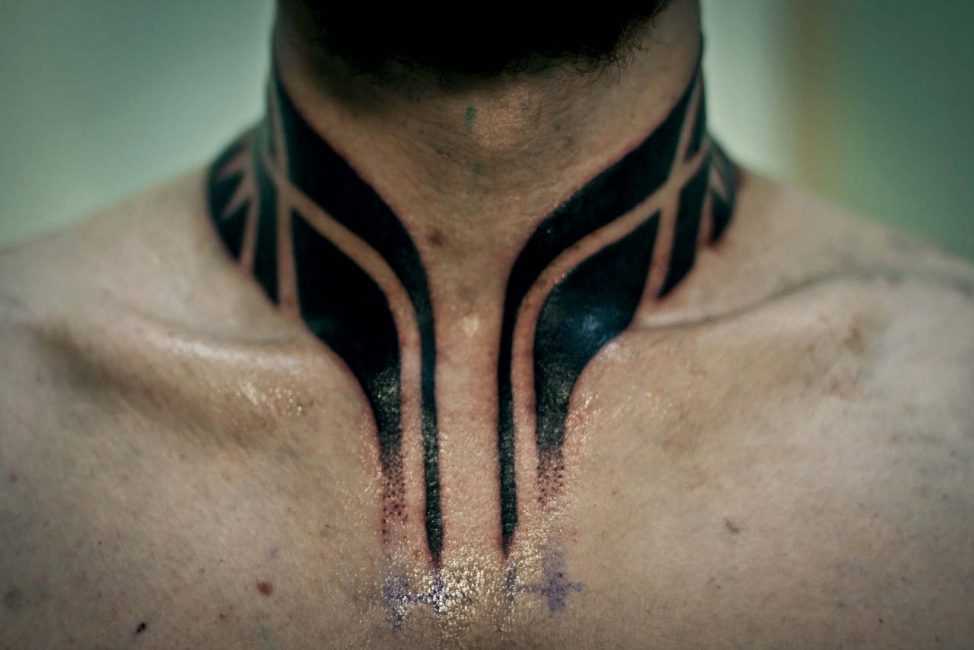 Тату на шее спереди для мужчин: эскизы, фотографии, значение