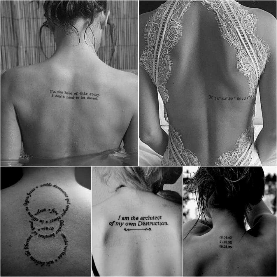 Тату надпись на спине — классический вариант татуировки, когда нужно кратко и лаконично выразить смысл. Надписи никогда не выйдут из моды, они просты, понятны и выглядят всегда уместно. В зависимости от шрифта тату надпись может быть как маленькой и незаметной, так и крупной, детальной и сложной.