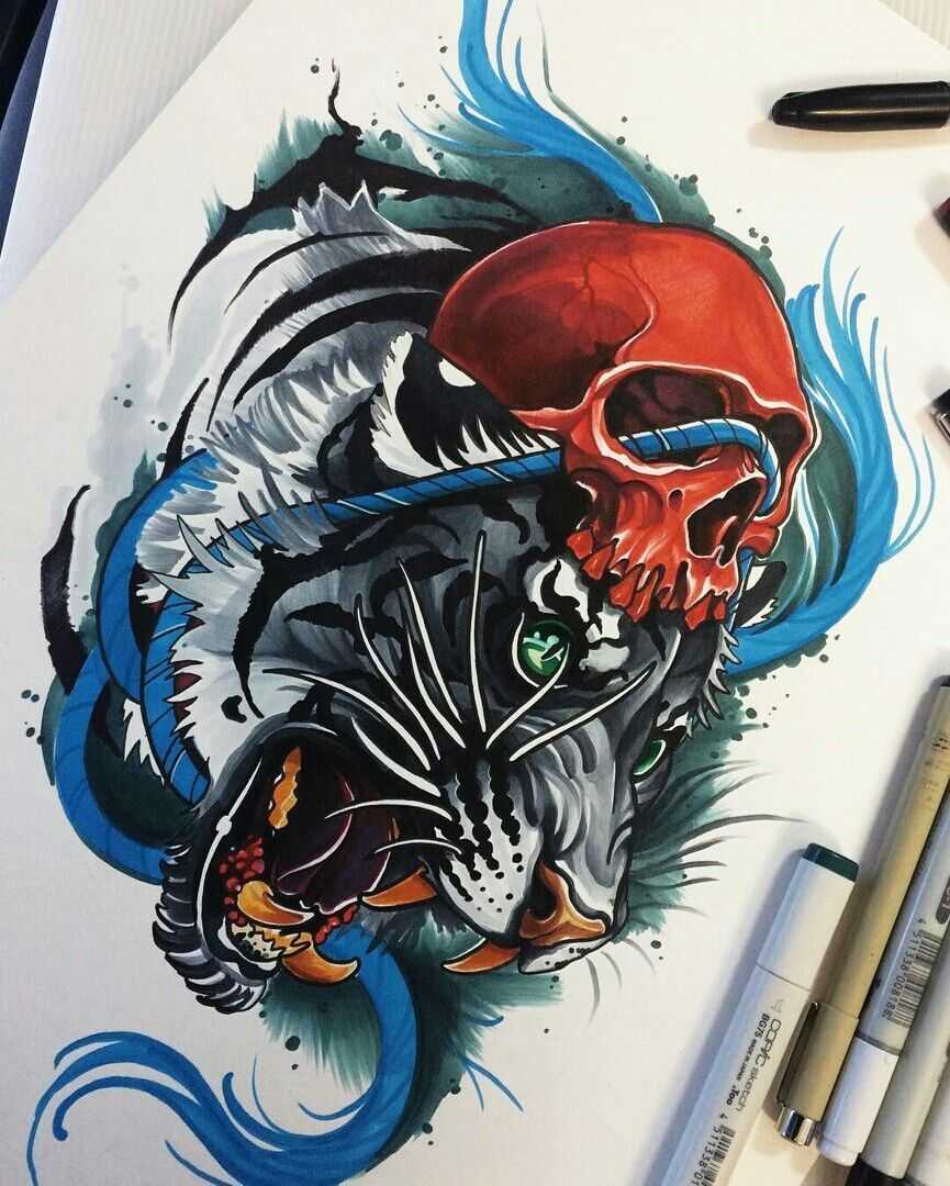 с черепом — злость, решительность, тревога, опасность, желание перемен — противоречивые чувства испытывает парень с такой татуировкой;