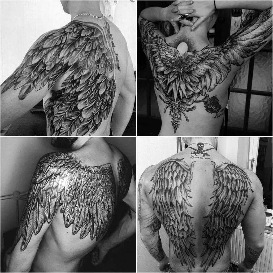 Мужские тату на всю спину в виде крыльев означают свободу, возвышенность, однако для детальной расшифровки должен индивидуально рассматриваться каждый эскиз. Крылья изображаются в черной или белой цветовой гамме, с разными животными, символами — любой элемент влияет на трактовку.
