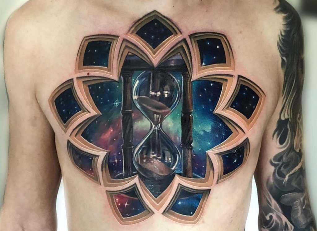 Татуировка в виде песочных часов чаще всего встречается у мужчин, связанных с творчеством. Это могут быть поэты, музыканты или философы