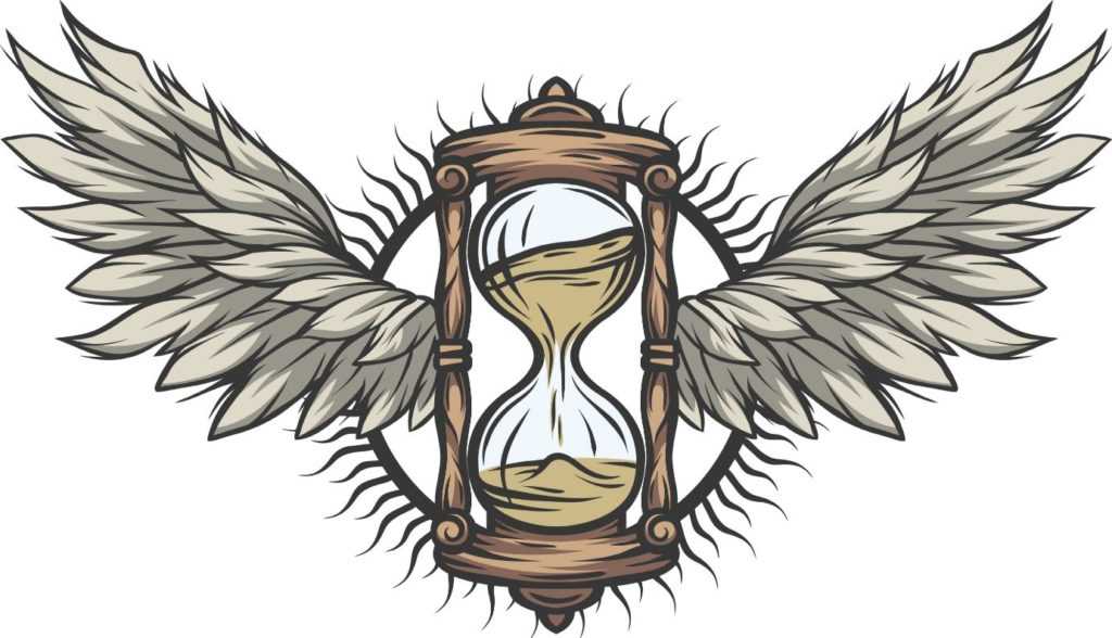 Разбитые песочные часы подразумевают какое-то несчастье, а песочные часы с крыльями метафорически подразумевают то, что время летит подобно птицам