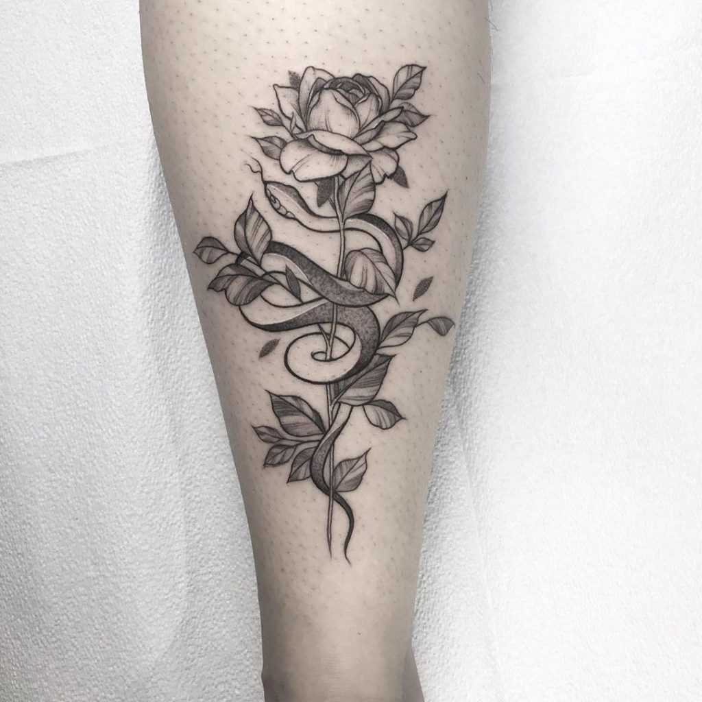 Тату змея и роза
