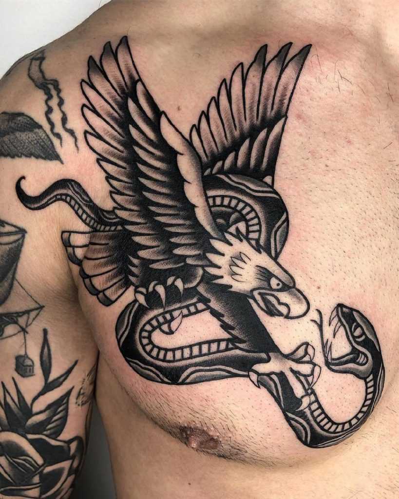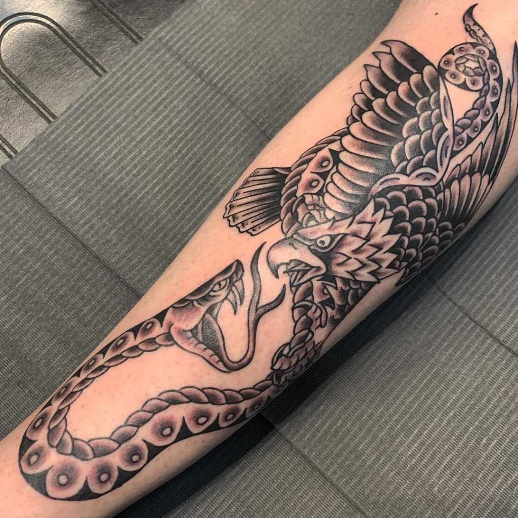 Тату змея и орел на руке