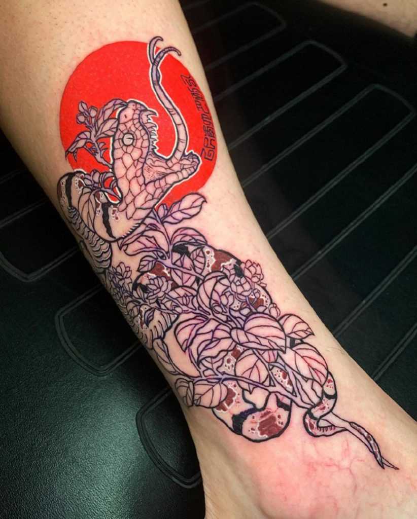 Тату змея и цветок