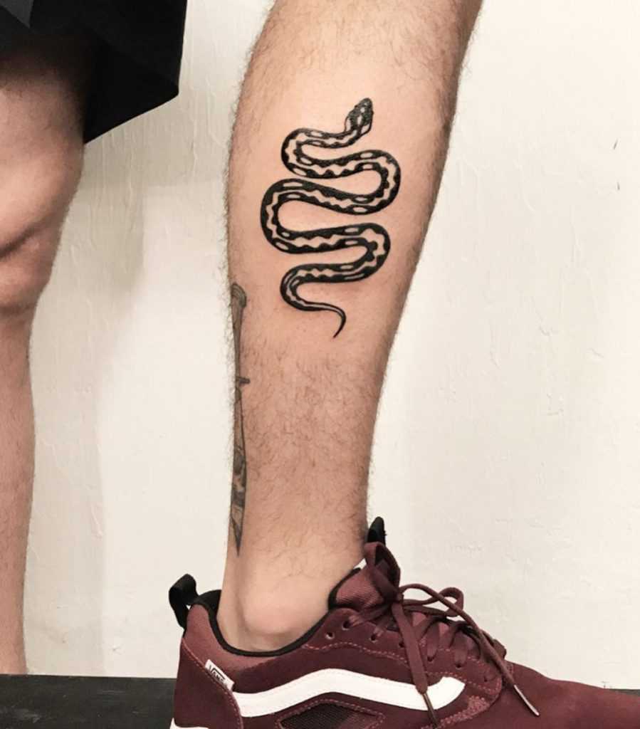 Тату змея на ноге