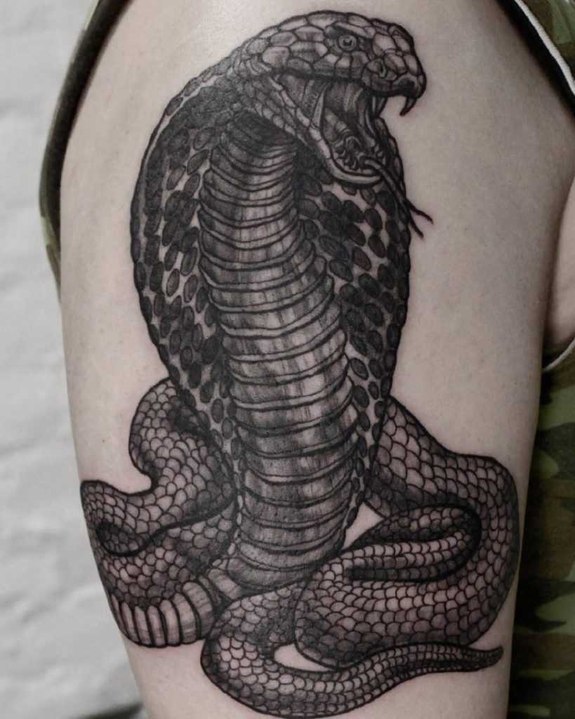 Тату кобра на плече