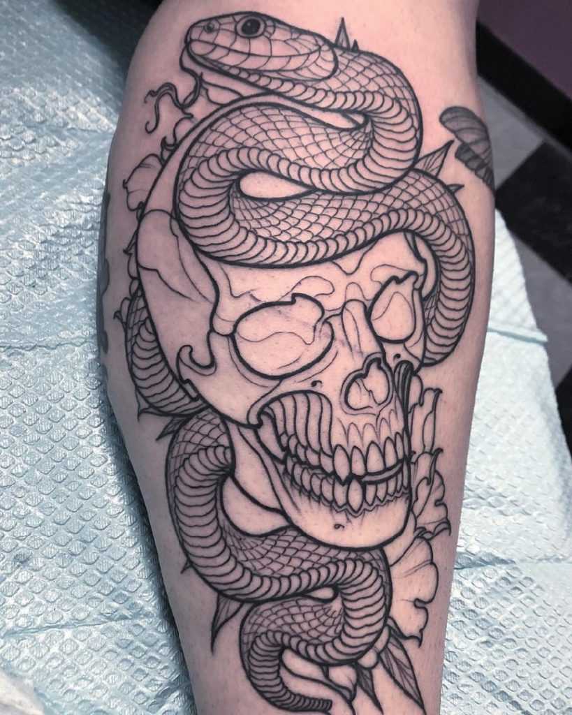 Сочетание змеи и черепа символизирует нежелание принимать смерть как данность, поэтому человек постоянно ищет выход ее избежать. Также изображение может означать, что носитель имеет пристрастие к алкогольным напиткам. Данная отсылка относится к библейским историям, когда змея негативно повлияла на Еву.