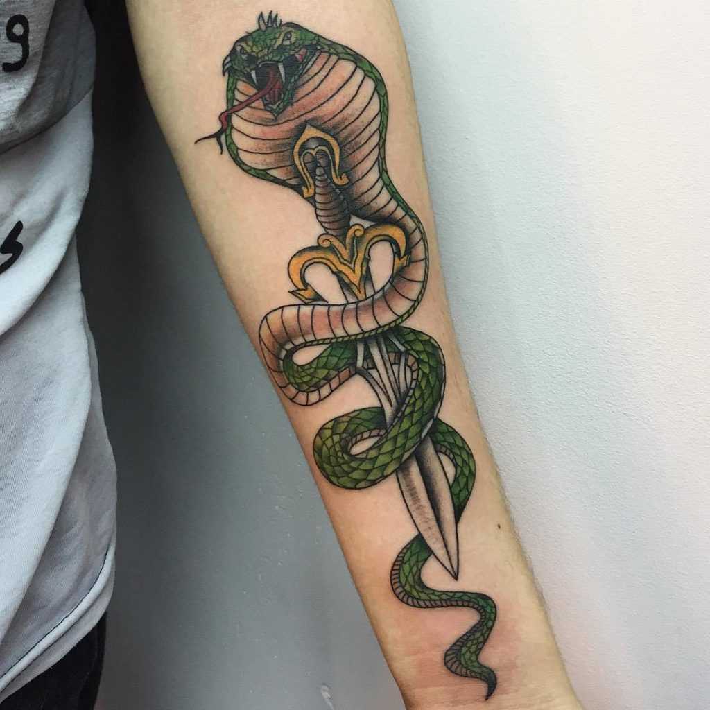 Тату змея и кинжал на руке