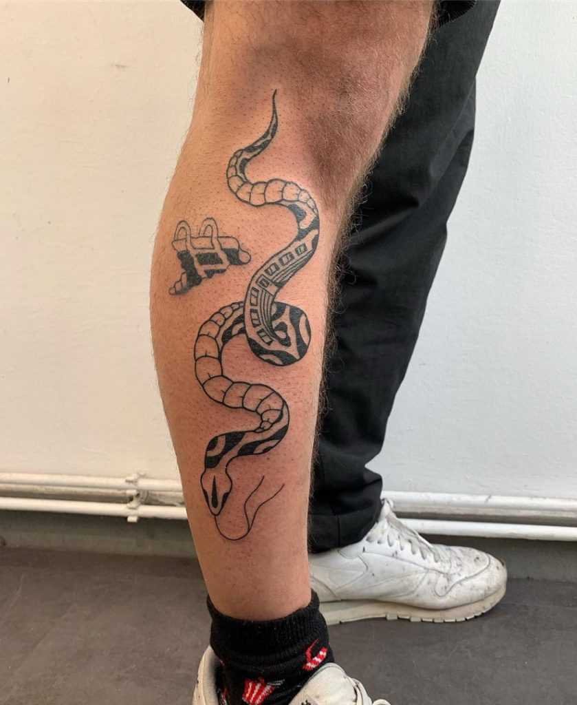 Тату змея на ногах сзади