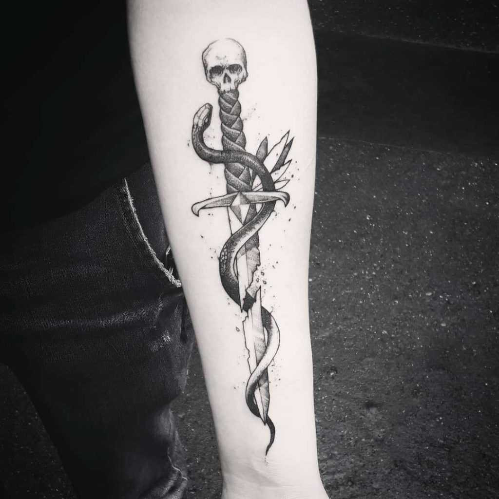 Татуировка змея с кинжалом или мечом