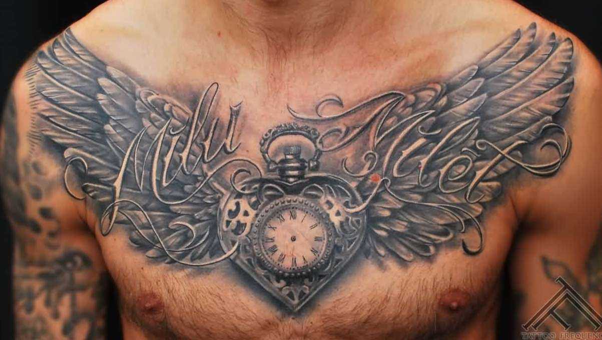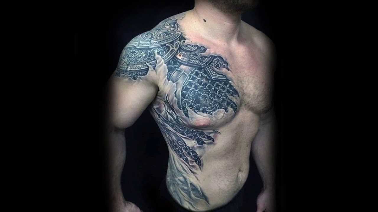 Универсальным местом для мужской татуировки также является грудь. Размер площади груди позволяет набивать масштабные картины. Мужчины чаще всего набивают тату в верхней части груди, подчеркивая широту и мощь плеч и грудины. Из-за наличия грудных мышц, это довольно безболезненное место. Исключение: ареол сосков, область ключицы, подмышечные впадины, эти места довольно чувствительны.