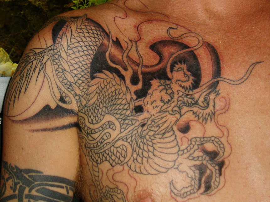 Если в планах есть нанесение татуировки на спину, грудь или шею, то стоит подумать о целостности сюжета. Чтобы рисунок на плече плавно переходил на другую зону.