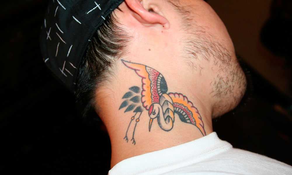Татуировка на шее может быть как продолжением других тату, так и отдельным изображением. Такие татуировки могут быть маленькими и большими. Шея почти всегда находится на виду у окружающих, это стоит учитывать при выборе эскиза. Шея достаточно болезненное место для накалывания.