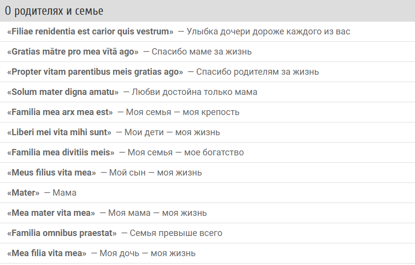 Популярная тематика фраз на латыни
