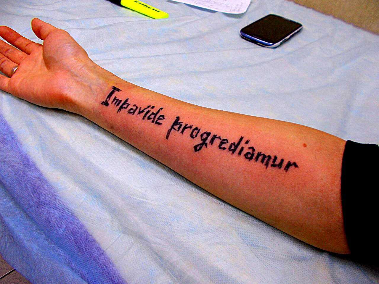 Рукописная латинская фраза для области предплечья