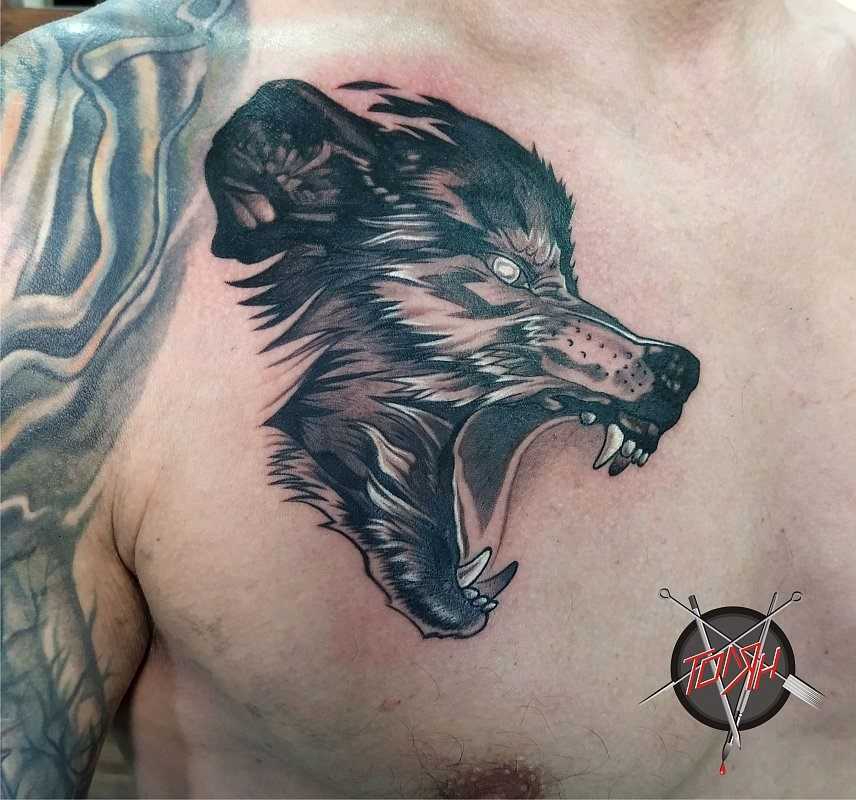 - Волк указывает на сильный мужской характер своего обладателя и стремление к достижению неопознанного. Волчьи глаза, выполненные отдельно, обозначают боль, предательство окружающих и одиночество.