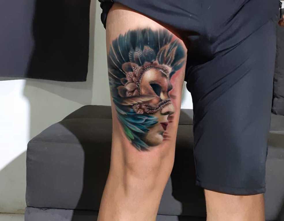 Маска, которая стала символом венецианских карнавалов, в качестве тату означает таинственность человеческой натуры. Под непроницаемой, богато украшенной маской, мог скрываться кто угодно – в карнавальной толпе невозможно было опознать друзей и врагов.