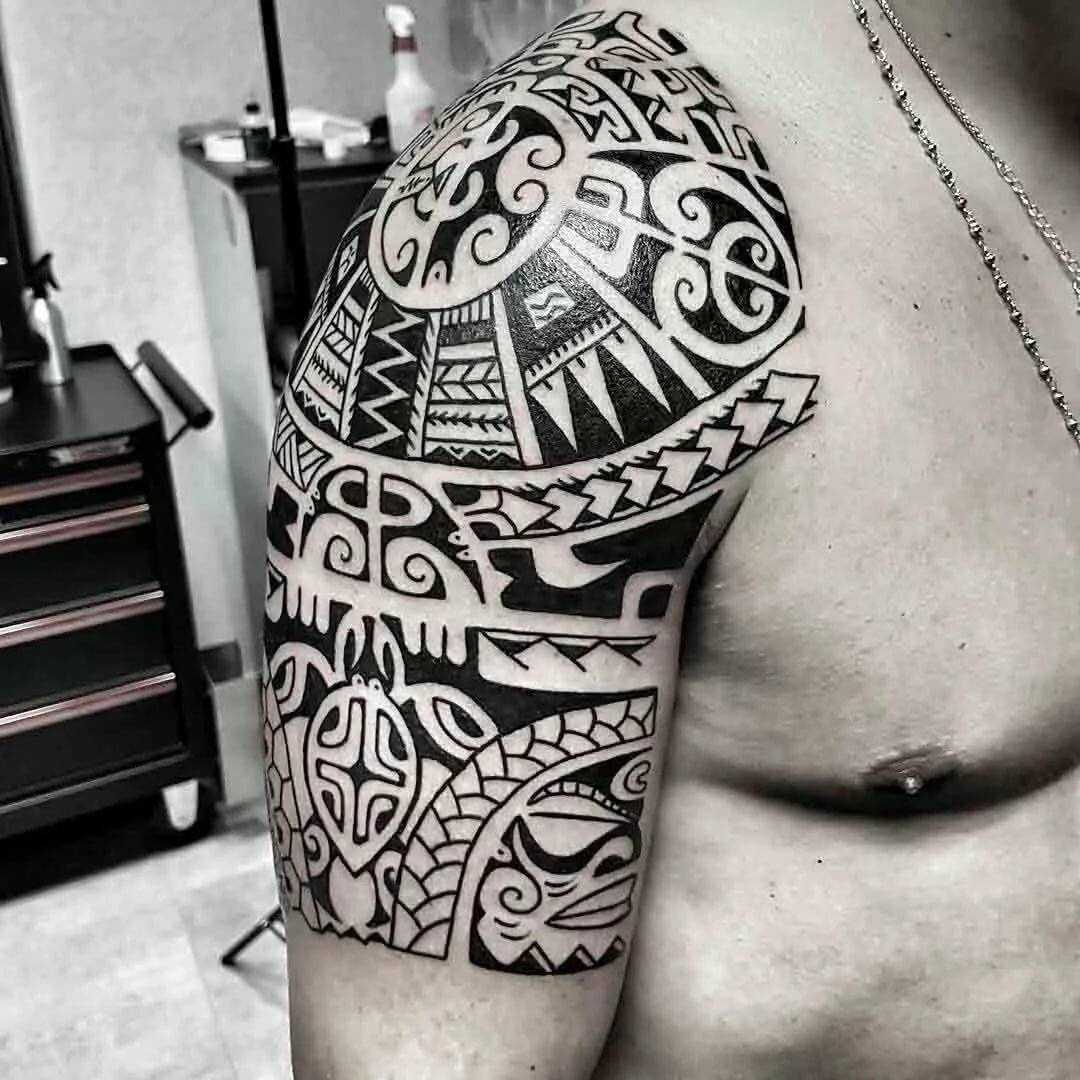 Основное значение узоров на плече мужчины – это упорядоченность действительности. Также сюда наносят рисунки, выступающие в роли оберегов от зла и темных сил. Считается, что смысл тату на плече может косвенно относиться к гнету обстоятельств и внутреннему смирению мужчиной.