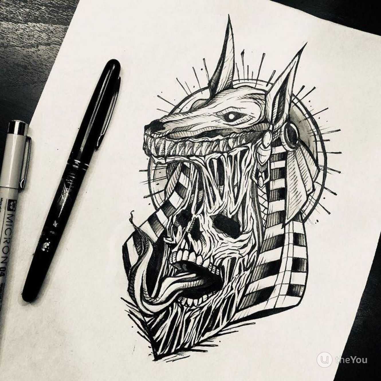 Изображение египетского божества несет сильную энергетику. Это был суровый бог загробного мира, ядов и лекарств. Сегодня тату с изображением Анубиса означает власть, справедливость и бесстрашие. Для многих это защитный амулет, проводник в мир тайн и загадок. Часто эскизы с Анубисом выбирают для тату на руке как демонстрацию силы и власти.