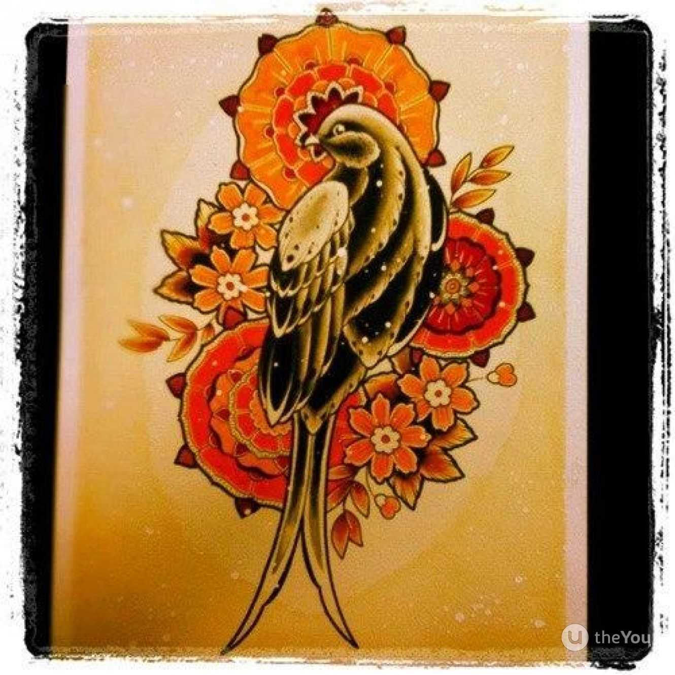 Впервые рисунки с ласточкой появилась на теле моряков. Когда ее встречали в море, это означало, что рядом земля и дом. С тех пор ласточка ассоциируется с возвращением домой, в родные пенаты. Также значение тату с птицей связывают с парящей в небесах душой человека. Девушки чаще наносят ласточек в районе лопатки и ключицы, комбинируя изображение с цветами. Мужчины для ласточек выбирают плечи, низ живота или ключицу. На мужском теле ласточка часто комбинируется с якорем или ключом.