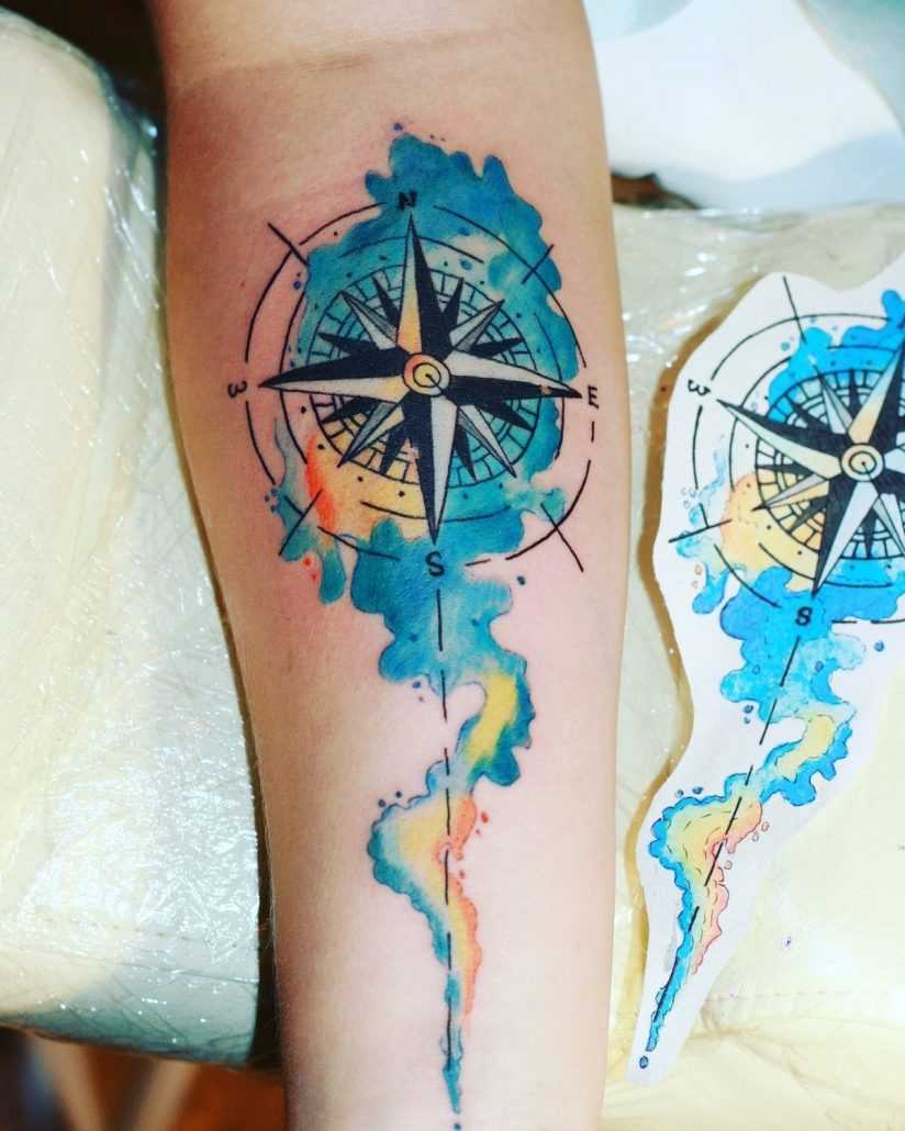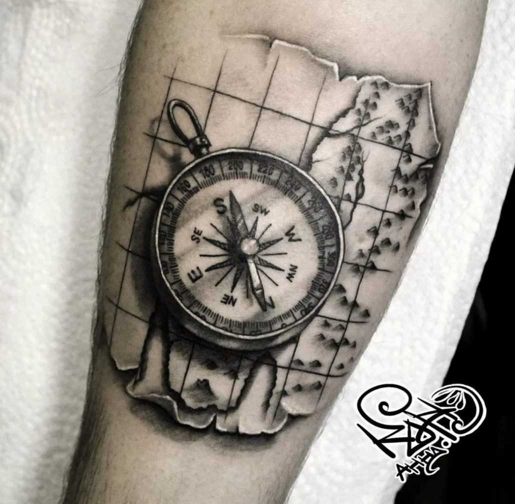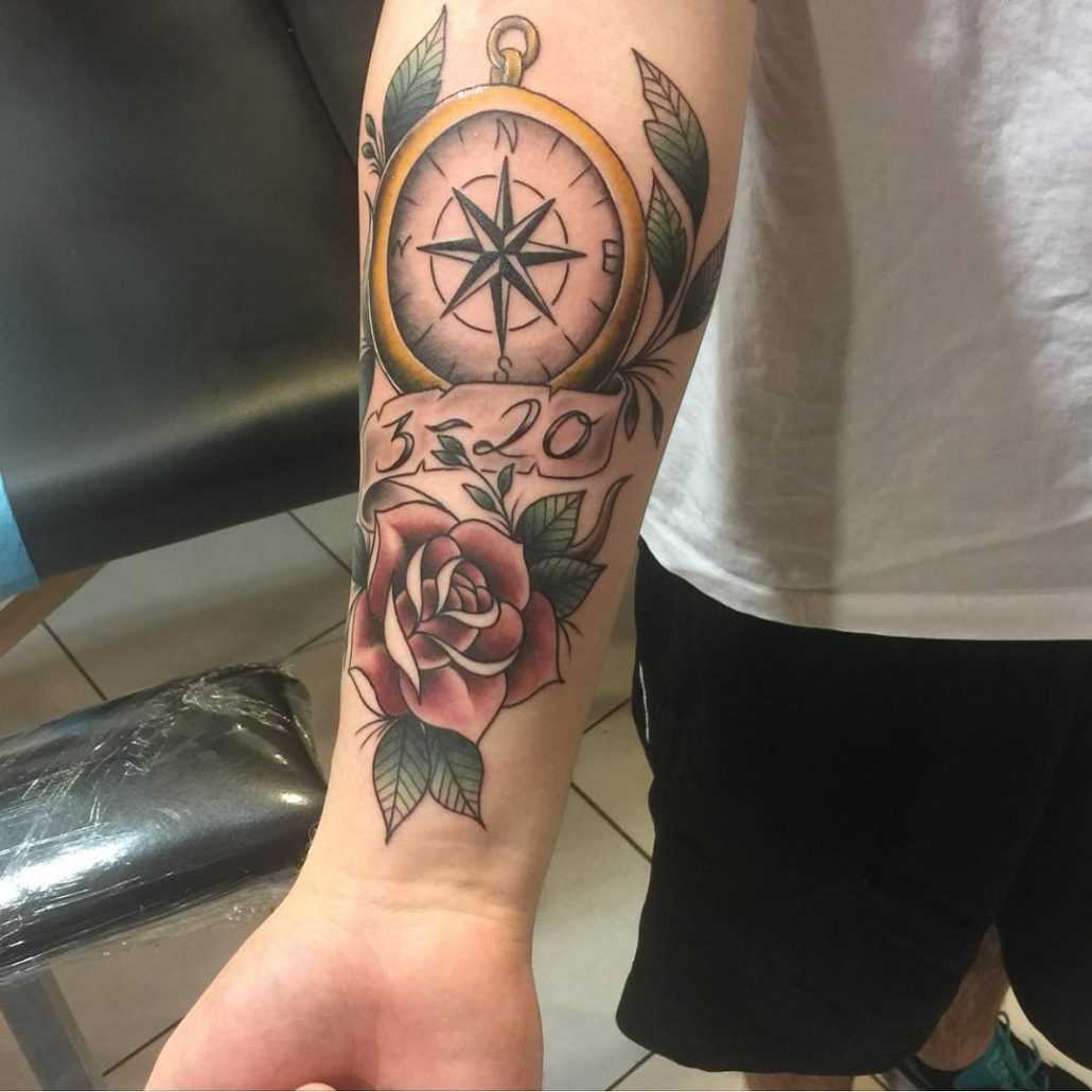 Намного реже можно увидеть на предплечье изображение компаса, которое может иметь глубокий смысл. Есть мнение, что компас способствует нахождению верного жизненного пути. К тому же такое тату может означать равновесие, верность и постоянство человека, на предплечье которого оно нанесено.