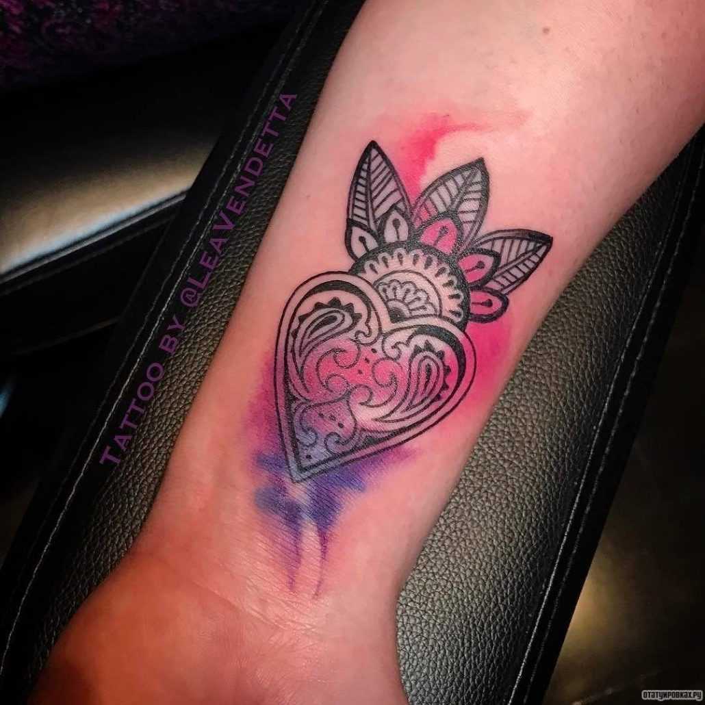 Очень часто девушки выбирают тату в виде сердца, как символ нежности, любви и романтики. При этом сердце не обязательно должно иметь классический вид. Неплохо будет смотреться сердце из кристаллов или нарисованное в геометрическом стиле. Чтобы тату было действительно уникальным, вы можете самостоятельно разработать его эскиз.
