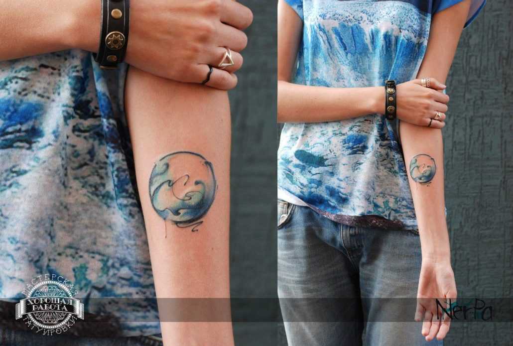 Тату космос — напоминание о том, что человек на Земле — маленькая частичка огромной Вселенной. Космическое пространство изучается различными учеными, однако до сих пор несет массу загадок и необъяснимых фактов. Маленькие тату с космонавтами, звездами, планетами часто выбирают романтики.