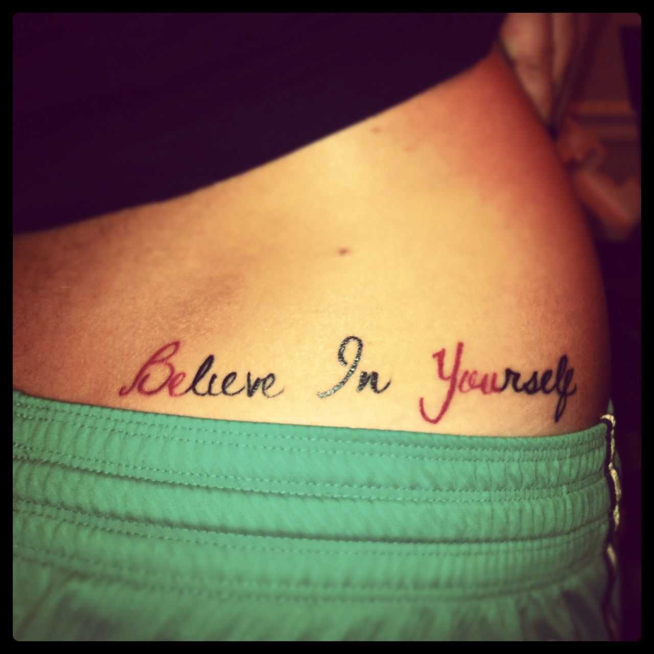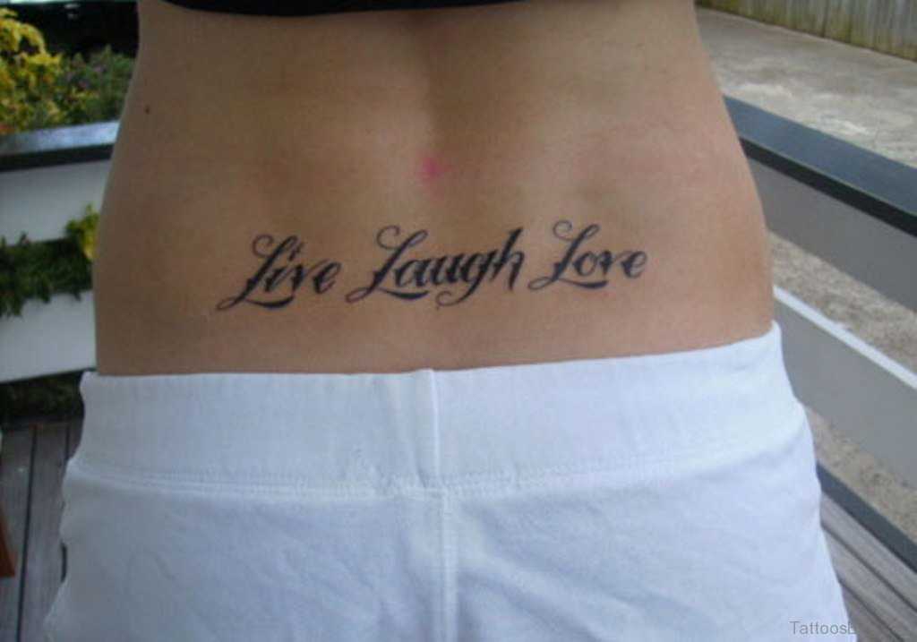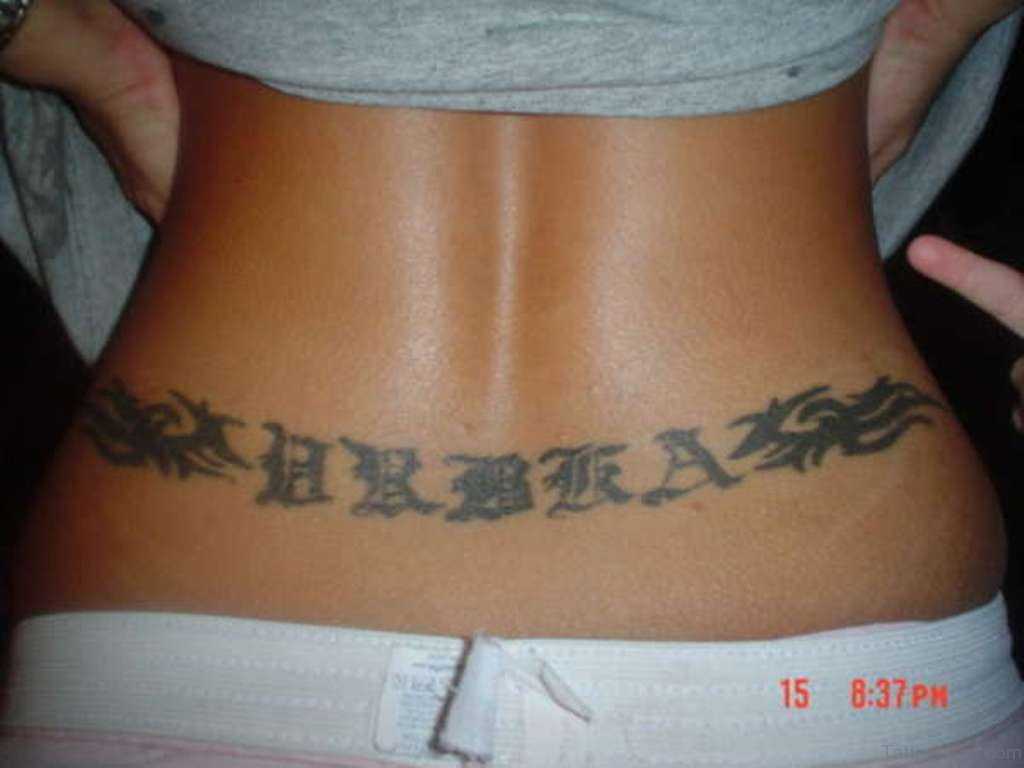 Не все девушки любят изображать животных. Порой тату надпись на пояснице девушкам идет больше.