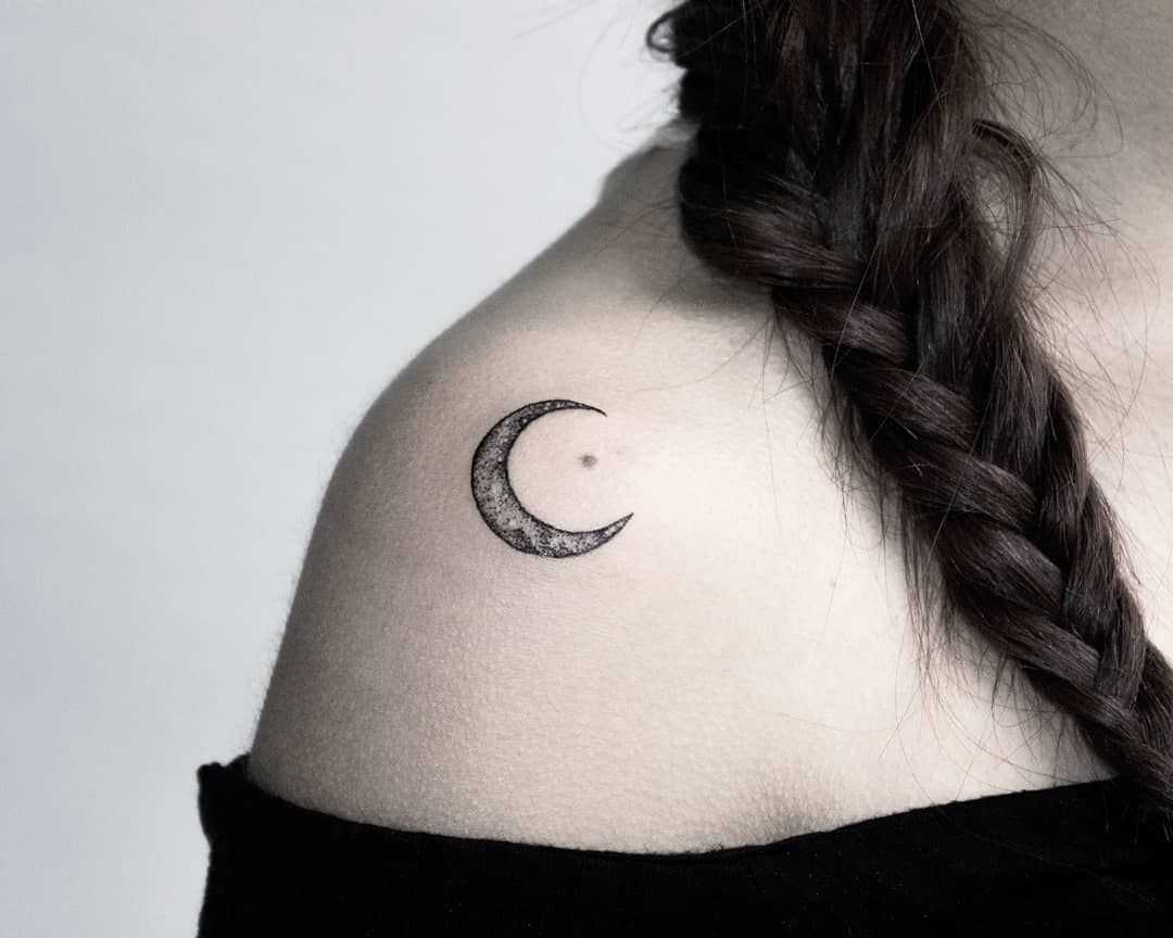 Луна всегда была связана с женским и материальным архетипом. Поэтому такой рисунок набивается как символ скрытой силы с различными влияниями. Этот эскиз связан с изменчивыми эмоциями или жизненным циклом. Такое изображение на плече также подчеркивает переход от тьмы к свету и представляет собой приобретенное знание.