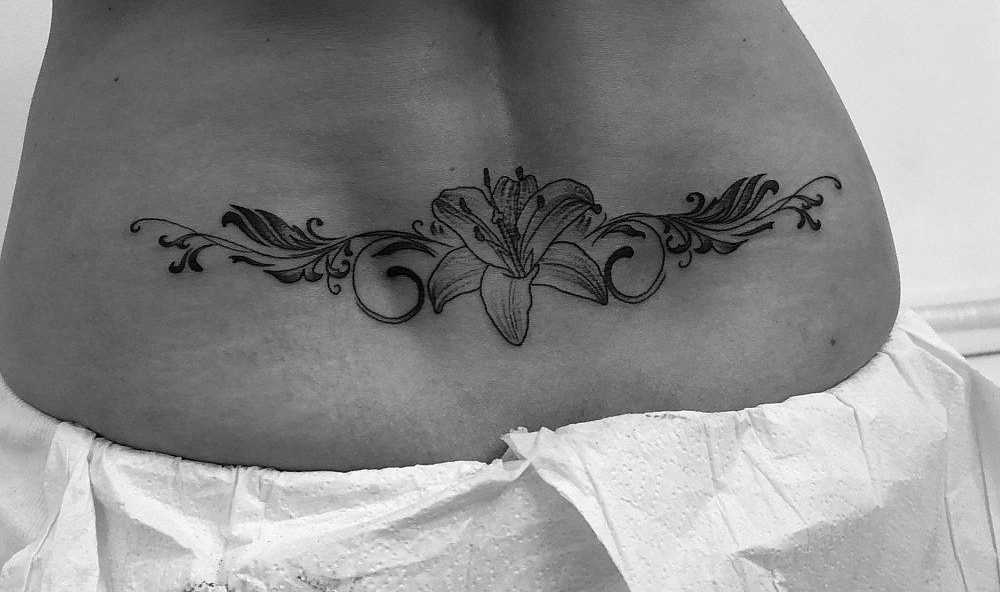 Довольно опасное место для женщины, так как раньше здесь били татухи исключительно девушки легкого поведения. А сейчас многие ходят с партаками из бабочек, ящериц и узоров в стиле трайбл на копчике.