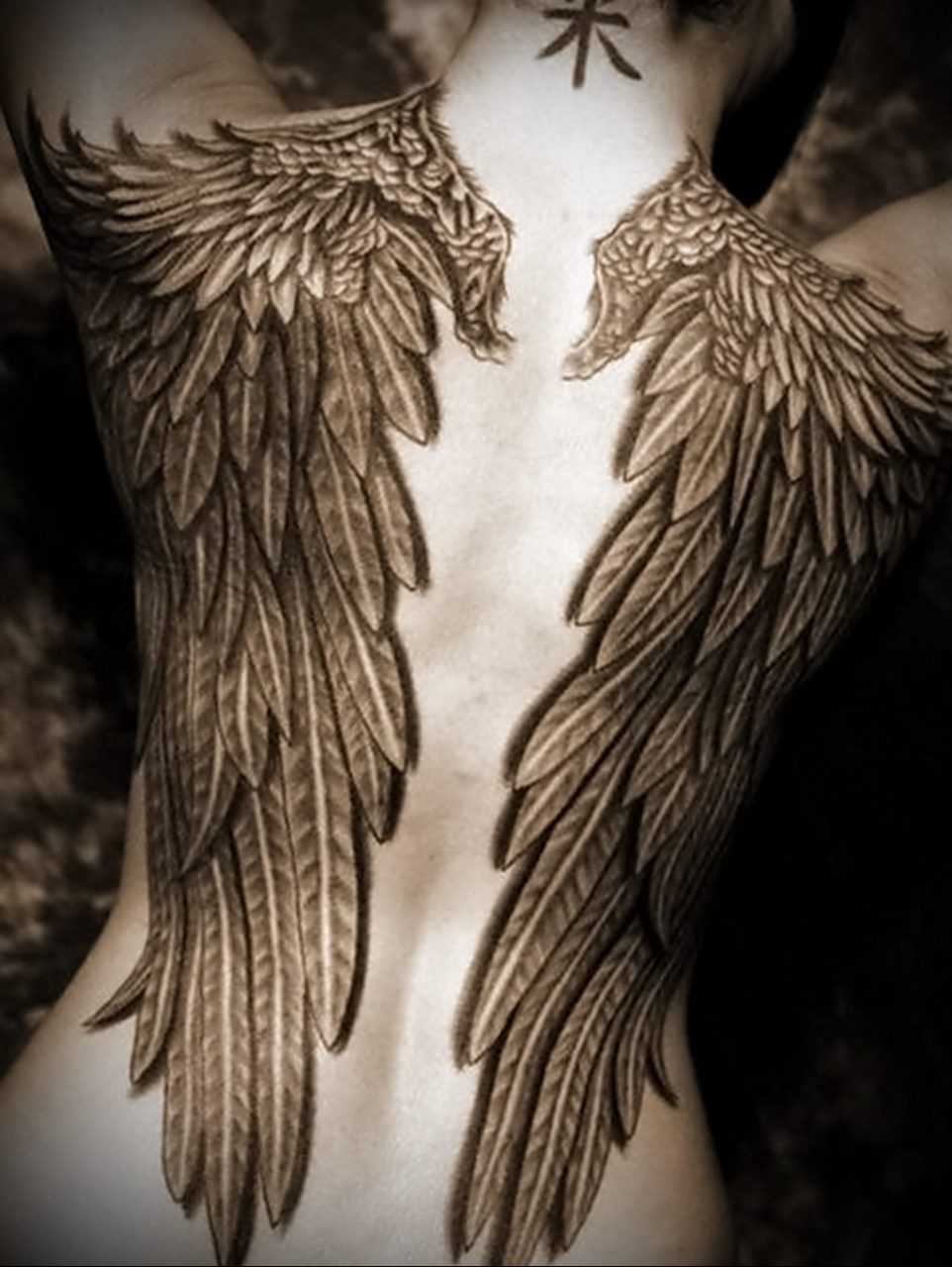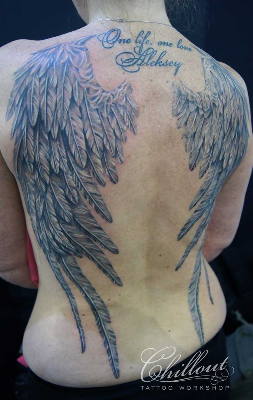 , как постоянное напоминание о том, что ангел-хранитель всегда рядом, или огромной, покрывающей всю спину, представляя мощь и способность подняться над обыденностью.