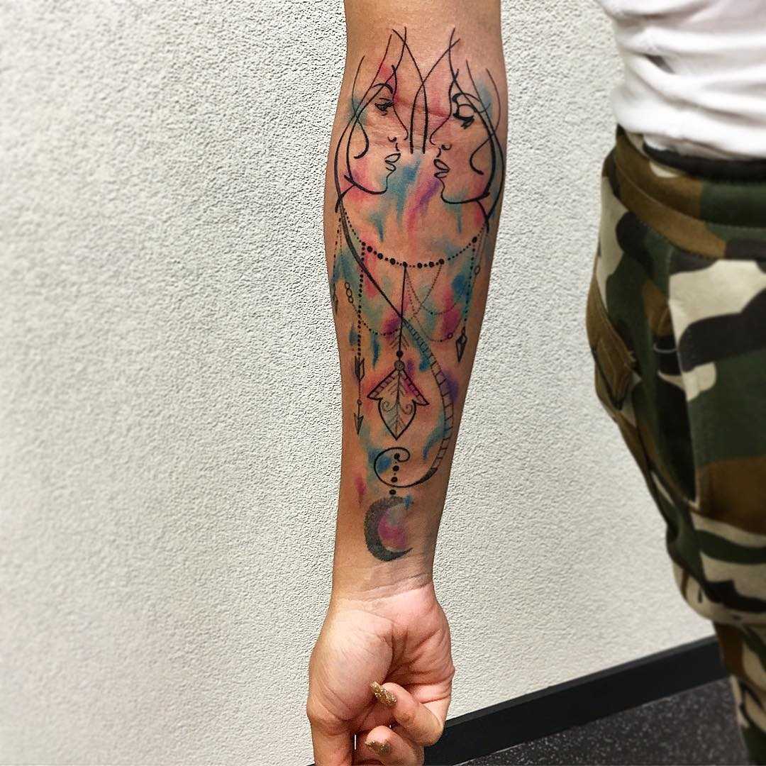 Близнецы — один из самых загадочных и утонченный знаков зодиака. Представители этого знака обладают хорошими манерами, знают как поставить себя в той или иной обстановке, обладают хорошей интуицией. При этом Близнецы достаточно ранимые и могут раздуть ссору буквально на ровном месте. Близнецы — возвышенные и легкие по характеру. Именно такие качества пытаются передать мастера в своих тату.