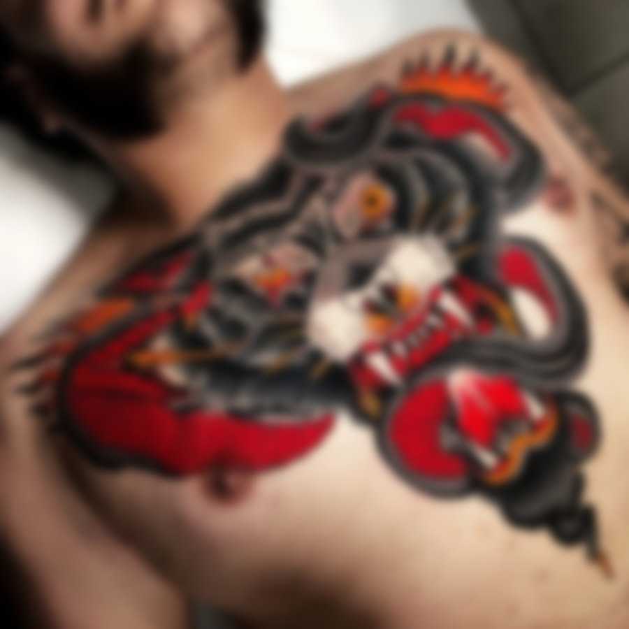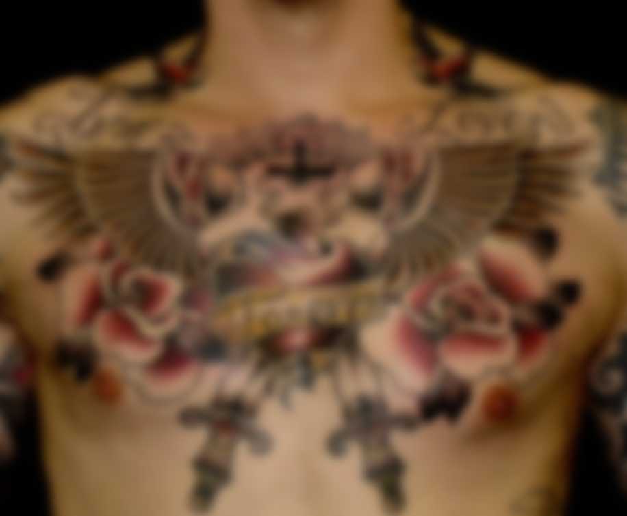Мужчины нередко начинают свой путь в мир татуировок не с маленьких незаметных эскизов, а именно с крупных рисунков. Тату на груди это вариант тату, который не будет слишком броским и легко может быть скрыт одеждой.