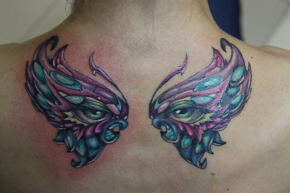 Татуировки с всевозможными изображениями крыльев отличаются неким магнетизмом и всегда привлекают внимание, особенно если наносятся на открытые участки тела. Этот неоднозначный рисунок будоражит фантазию, завораживает и смотрится очень эффектно